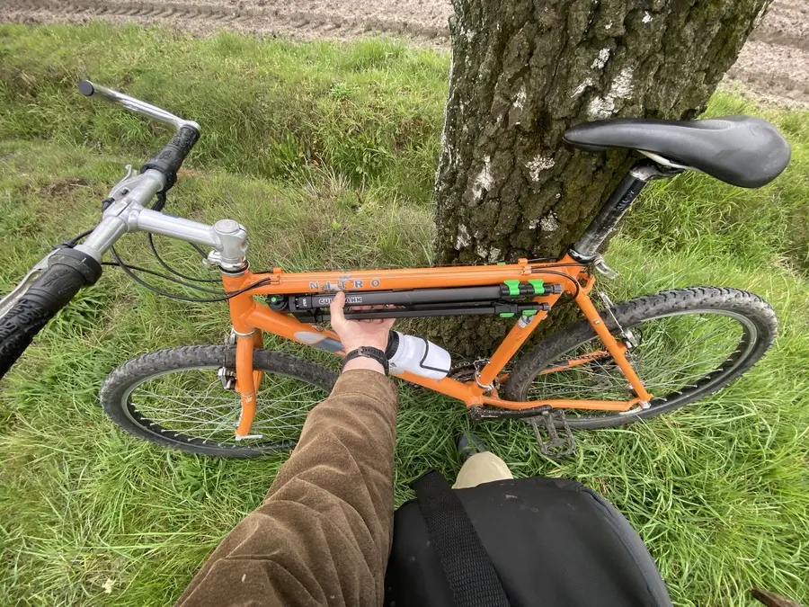 For long exposure photo's you need to carry a tripod. There's no way around it. I brought mine in my sling bag, the one I made myself. It was a bit of a pain in the ass the get the thing out of the bag everytime I wanted to use it. Then I thought: why not attach it to the frame of the bike, like a frame bag? With some easy straps or something. That might be a nice sollution. Will try it next time.