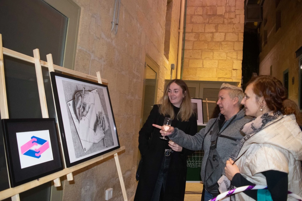 But having only three works would be a bit boring, right? Why not add more Escher works? And while we're at it, why not invite contemporary Maltese artists to join the expo as well?! You can imagine that my imagination and enthusiasm were going into overdrive at this moment. I could see the vision appearing vividly in front of me. There would be fancy drinks with bubbles, waiters in waistcoats, and a real V-I-P to officially open the exhibition! In conclusion: I was going to become an art curator!