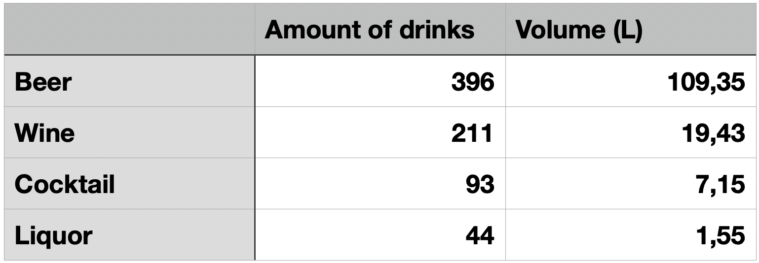 And with that I'd like to conclude this article. Except for the data freaks among you who are interested in 1) how exactly I tracked my data, or 2) the exact data on my favourite drinks. For you I have included a few extras in the appendix :)