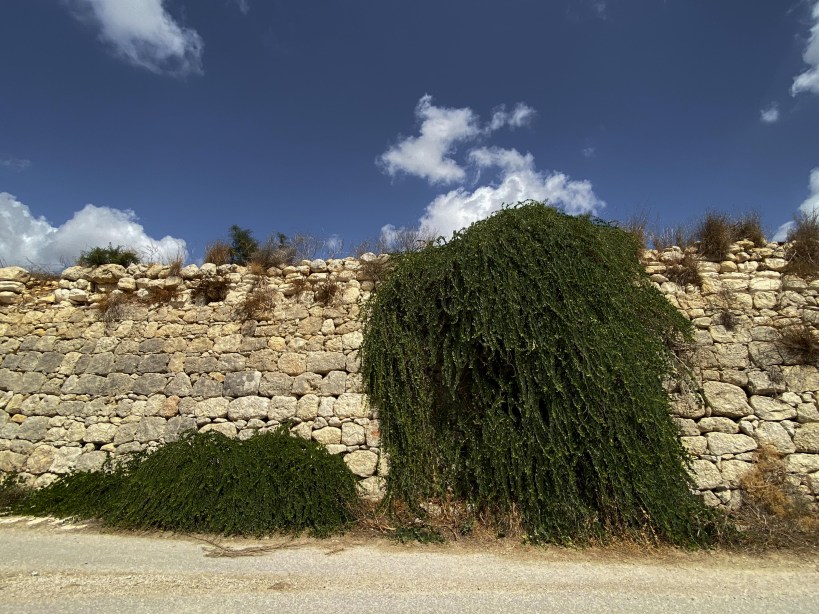 Ja, hoor. Flinke struiken langs de weg in Wied il-Qlejgħa.