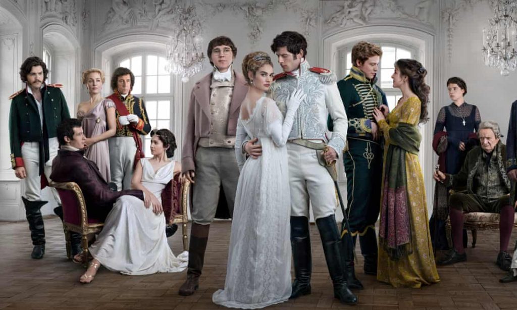 The most recent TV adaptation of War and Peace by the BBC (2015). In the middle is countess Natascha, flanked by Pierre (left) and Andrei (right)
