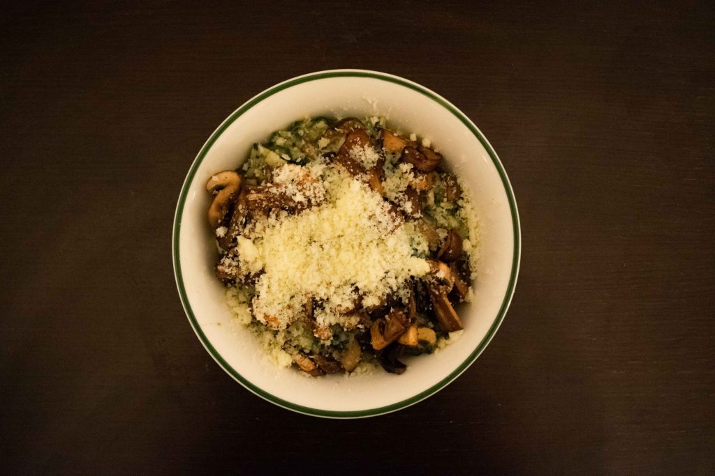 This is what a simple diner looks like. Risotto with spicach and mushrooms