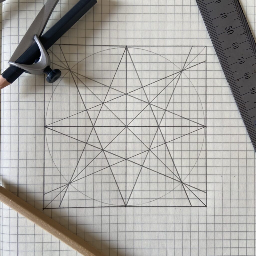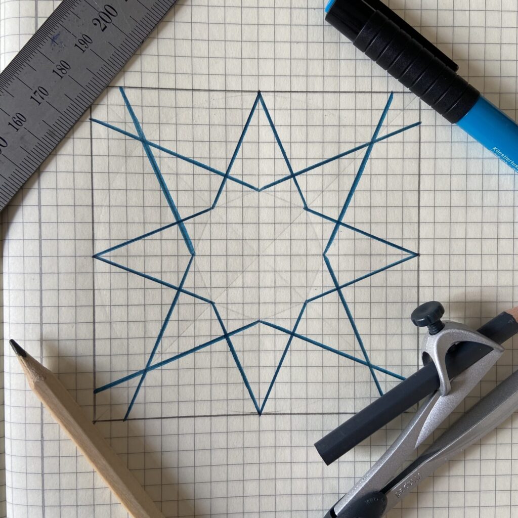 Here you can see some first baby steps of this experiment. I’m using the book Islamic Geometric Patterns by Eric Broug as guide for this experiment. It’s very fun and interesting to draw the tile by hand. It provides a lot of insight into the mechanics of the shapes.