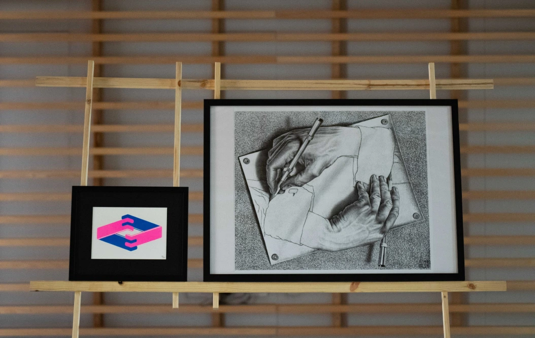 But besides my personal affection for their works, there were some compelling parallels between their works and M.C. Escher's oeuvre. Without any effort on my end, I discovered many intriguing dialogues between their works and the M.C. Escher pieces.