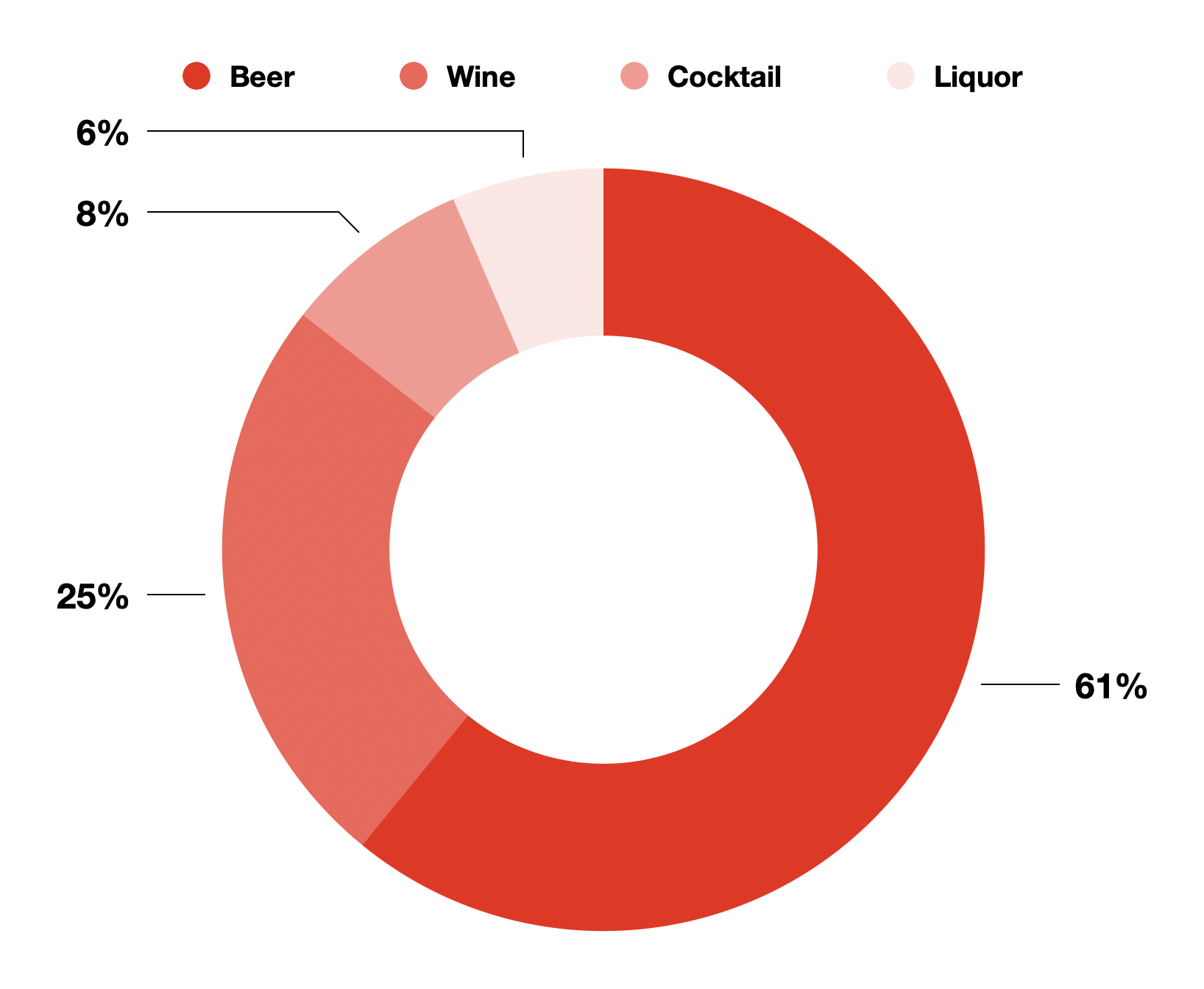 In the table below you can see exactly how many drinks I've had in each category. By far the largest group is beer. I'm not surprised by that. Beers are easy, nice, refreshing drinks. I like them. But 109 liters of beer in a year does sound like quite a lot, doesn't it?