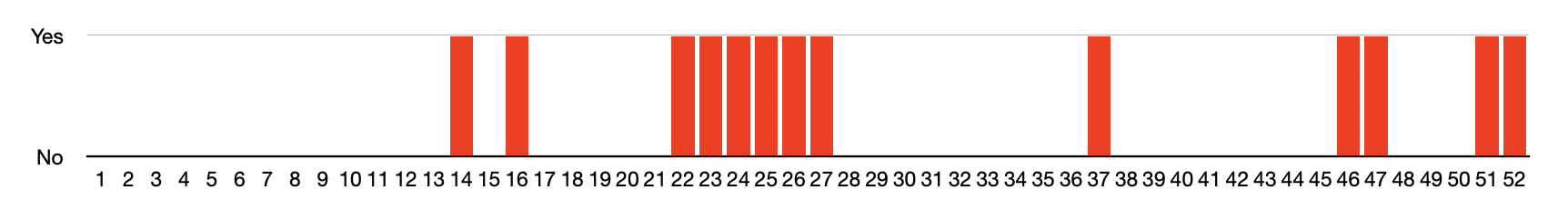The why behind this challenge is also easy to pinpoint (see the trend? I'm a simple man). I started tracking my alcohol consumption in 2023 in order to fill in the blanks in my annual-data-based reflection. You see: in 2022 I used my sport data (Strava) and reading data (Goodreads) to find interesting trends in my life. I found out that I become concerningly inactive during the summer months. For some reason I hardly do any reading or sporting during that time.
