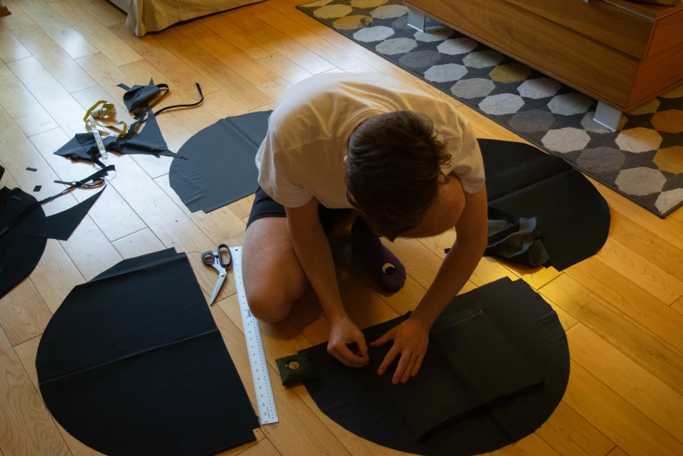 I bought all of the hardware for the bag on Saturday (some of the hardware used for this bag actually comes from the Wolt delivery bag that I salvaged last year on Malta) and then I spent all of Sunday on the construction of the bag. I combined two different patterns, one for the outer shell and one to guide me through the process of the internal pocket. I freestyled the shoulder strap.